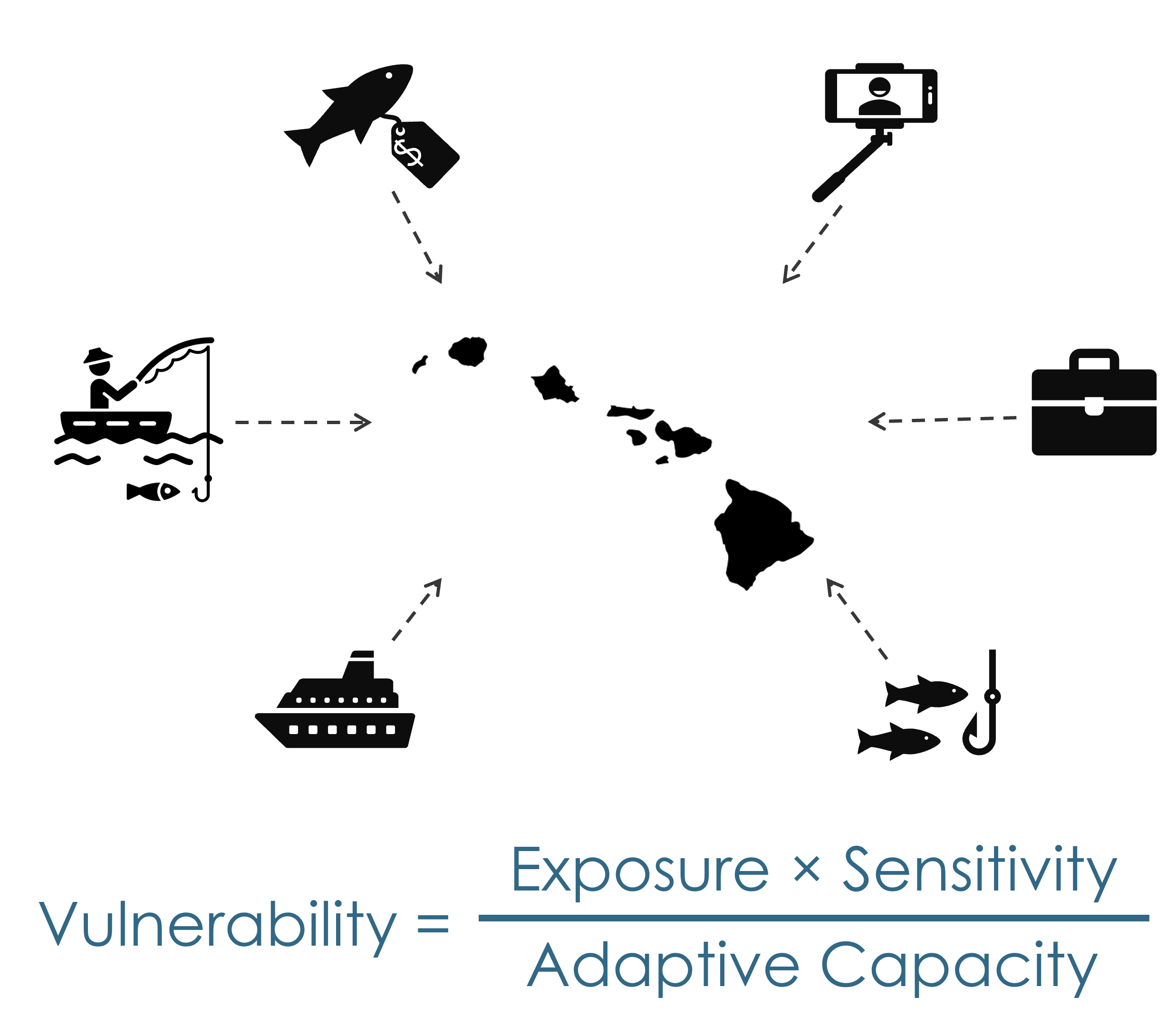 To build the sensitivity index, we used datasets that capture the degree of human dependence on reef resources. Sensitivity reflects how strongly communities are affected when reef conditions change, with higher dependence corresponding to higher sensitivity. Because time series data are not available, this index focuses on spatial variation across the MHI. These indicators provide a snapshot of the economic and social reliance on coral reef ecosystems.